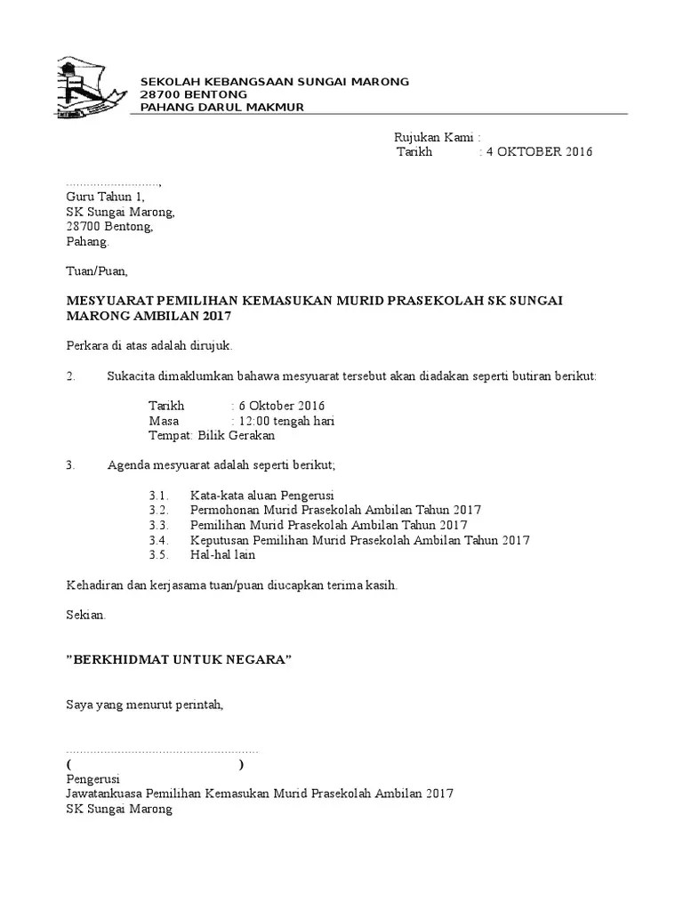 Smk tun mutahir surat jemputan mesyuarat unit bimbingan . Contoh surat notis mesyuarat agung. Berkhidmat untuk negara saya yang menurut perintah,. Surat panggilan mesyuarat ajk pibg 2017. Abu bakar) setiausaha jawatankuasa panitia bahasa melayu Surat panggilan mesyuarat kurikulum bil 2 2015 cute766. Surat memohon sumbangan minuman percuma milo via . Format gambar contoh surat panggilan mesyuarat kerajaan terbaik 2019. Surat jemputan ibu bapa mesyuarat p. Contoh surat panggilan mesyuarat jkkk contoh surat. Contoh surat rasmi jemputan penceramah rasmi . Disni dilampirkan notis panggilan mesyuarat agung tahunan dan pemilihan jawatankuasa baru bagi.